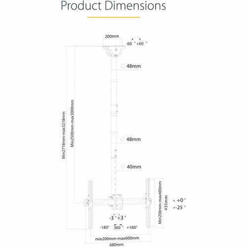 Ceiling TV Mount - Long Pole - Steel - Startech.Com